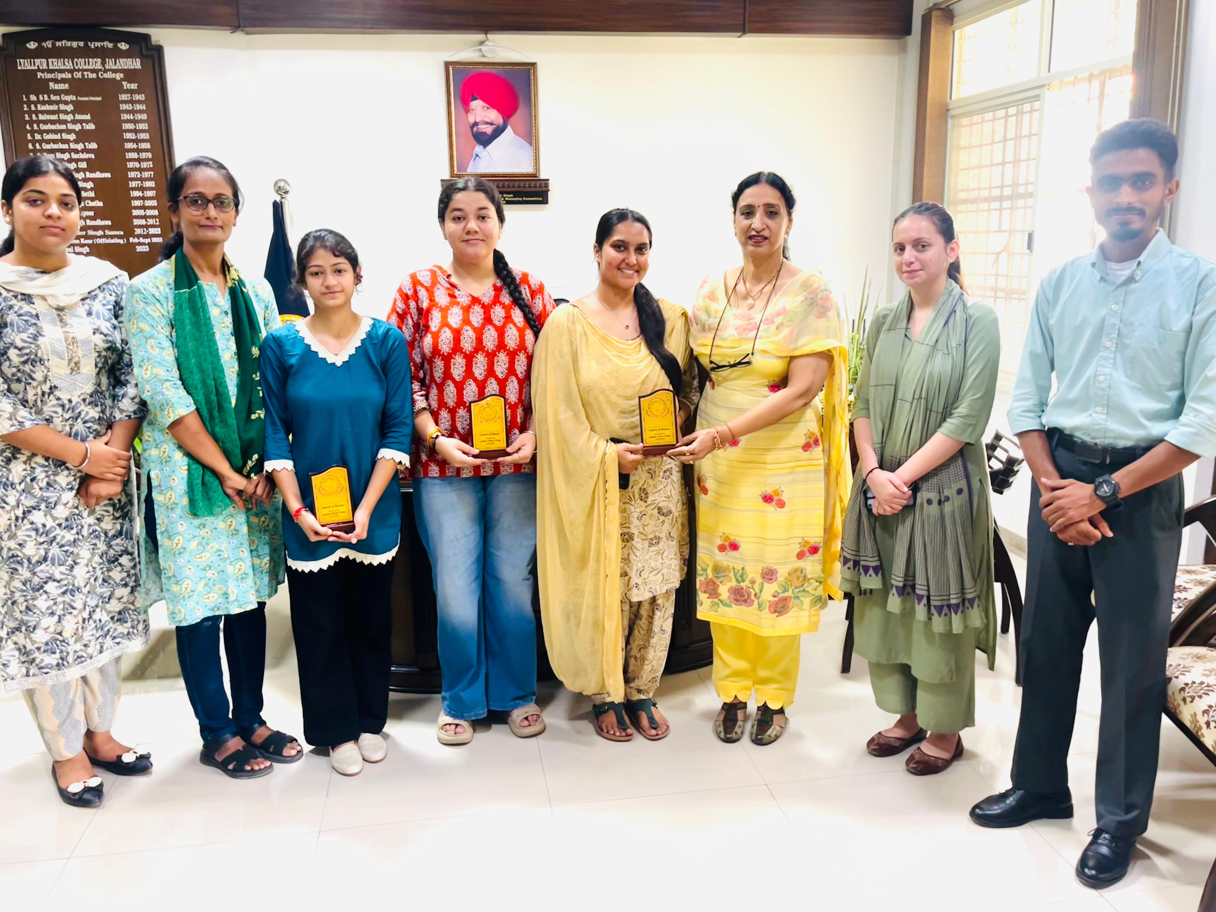 Students of Lyallpur Khalsa College Jalandhar have performed splendidly in Guru Nanak Dev University exams of M.A. Geography Semester-II. In a press release today, the Principal of the College Dr. Suman Chopra informed that Jaspreet Kaur and Ipsa Joshi bagged 2nd positions by getting 9.00 SGPA out of 10, whereas Gurwinder Singh bagged 3rd position by getting 8.60 SGPA and Parul bagged 4th position by getting 8.40 SGPA in the same class. The President of the College Governing Council Sardarni Balbir Kaur and Principal Dr. Suman Chopra congratulated the students and wished them success in life. Dr. Pooja Rana Head P.G. Department of Geography, Prof.Kamalpreet, Prof.Ishu and Prof.Kartik were also present on this occasion.